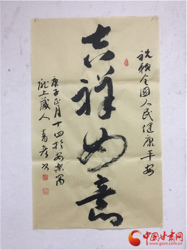 中國甘肅網(wǎng)2月12日訊(本網(wǎng)記者 張?zhí)m琴 張玉芳)2020年新春,面對突如其來的新冠肺炎疫情,全國人民正在以必勝的信心全力打贏這場沒有硝煙的戰(zhàn)爭。翰墨傳情,為抗疫助力。2月11日,由甘肅省文聯(lián)主辦,甘肅省文聯(lián)所屬文藝家協(xié)會、中國甘肅網(wǎng)承辦的甘肅文藝界戰(zhàn)“疫”主題作品展播活動正式啟動。我省12位書法大家揮毫潑墨,這些作品為所有奮戰(zhàn)在抗疫一線和防控疫情工作的平凡天使加油鼓勁,祈禱祝福,用文藝凝聚起抗擊疫情的強大精神力量,為我省防控疫情宣傳助力,受到了社會各界的贊譽。