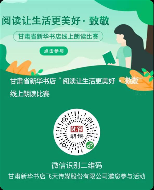 讀者進(jìn)入“甘肅新華書店飛天傳媒”公眾號點(diǎn)擊“新華朗讀”進(jìn)入小程序后,點(diǎn)擊頂部的“閱讀讓生活更美好?致敬”活動(dòng)圖,進(jìn)入活動(dòng)專區(qū),即可參加朗讀。