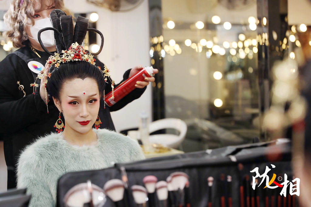 4月10日,陳婉琪做了三個多小時的造型,“因為是要參考敦煌壁畫的內(nèi)容來做,所以不管是服飾還是妝容,都要一點點的調(diào)整。”