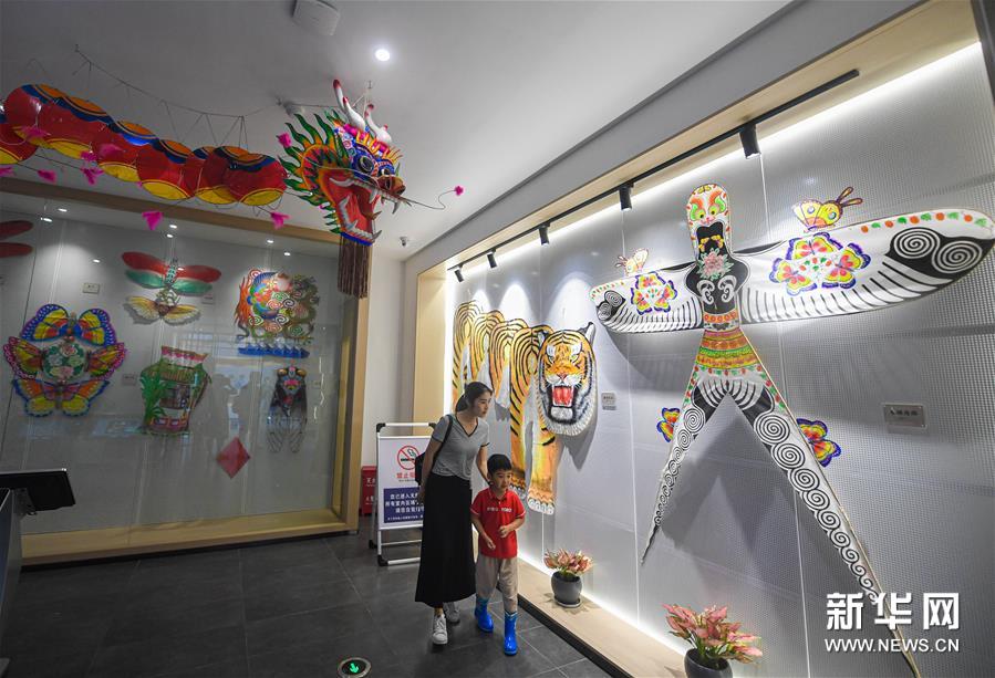 6月6日,游客在瓶窯老街內(nèi)參觀“風(fēng)箏燈彩館”。新華社記者 徐昱 攝
