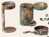 甘肅省博物館收藏了一件漢代燈具——啟合銅燈。這件銅燈出土于秦安縣袁家村。大概是朽得太厲害了吧,這件圓柱形的燈具看上去有些不起眼,就像一個銹跡斑駁的圓筒子。小心地打開它,卻不然,設(shè)計得別有玄機(jī)呢。這只筒狀銅燈一體三盞,非常精妙。最上層照例是蓋,可以卸下,蓋面有三鈕,蓋側(cè)有柄以活鉚套連,翻轉(zhuǎn)成燈盤。燈身呈圓筒形,一側(cè)有半圓柱形側(cè)槽,底為三層,中層系半活動底,以半圓柱軸相連接。第二層燈盤可轉(zhuǎn)動。全器能旋轉(zhuǎn)啟合,設(shè)計匠心獨(dú)具。
