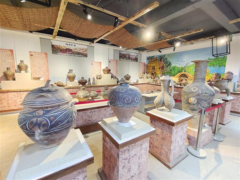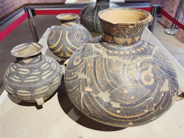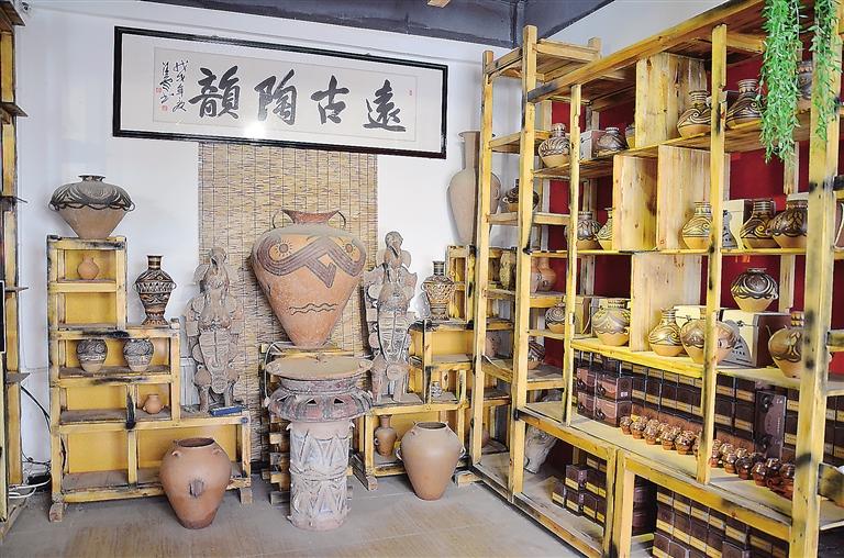 走進彩陶藝術館,目之所及都是造型獨特的仿彩陶罐,在墻上可以看到陶片裝飾的藝術品,細節(jié)透著“彩陶之鄉(xiāng)”的文化底蘊。