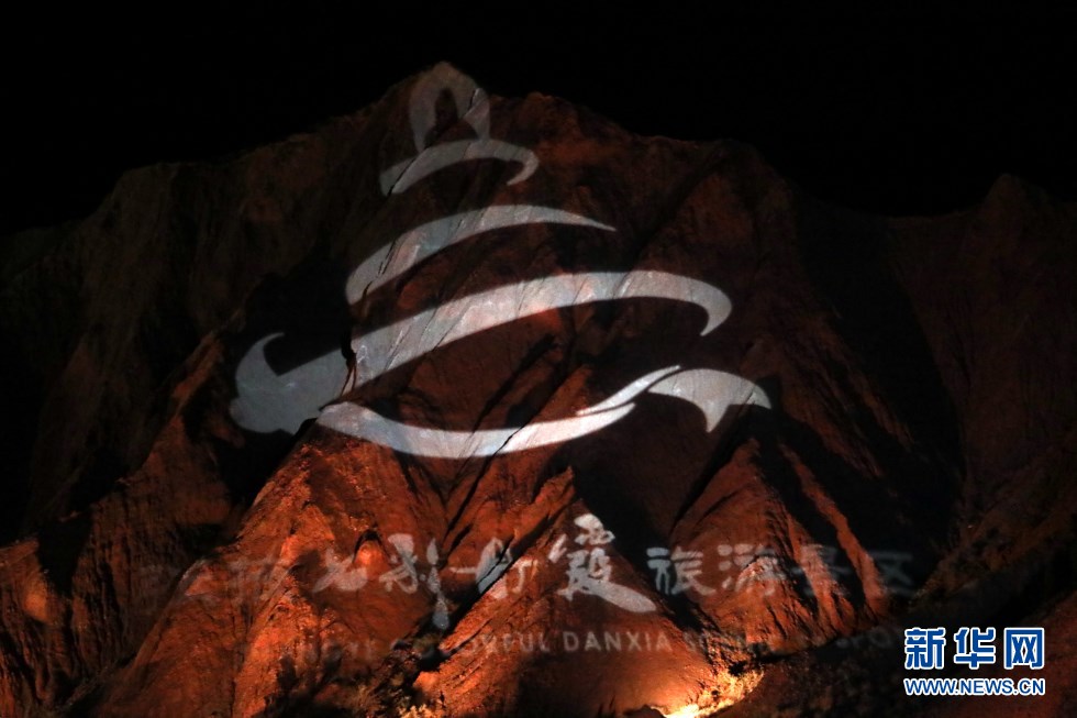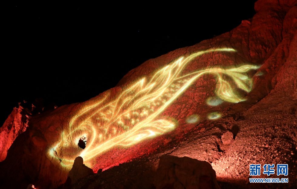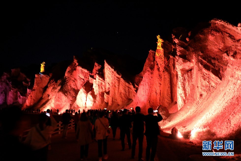 七彩丹霞與燈光秀融合,呈現(xiàn)了一場精彩紛呈的視覺盛宴。新華網(wǎng)發(fā)(王生元 攝)