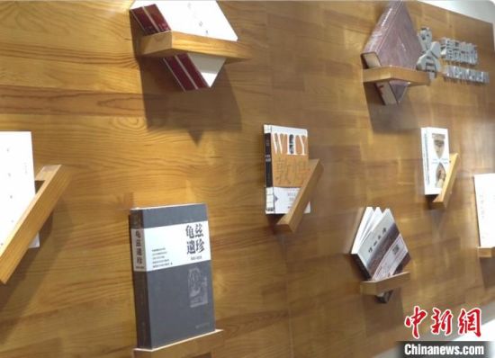 圖為讀者出版集團(tuán)甘肅教育出版社的“精品圖書出版墻”,敦煌類圖書是該社出版的一個重要板塊?!“瑧c龍 攝