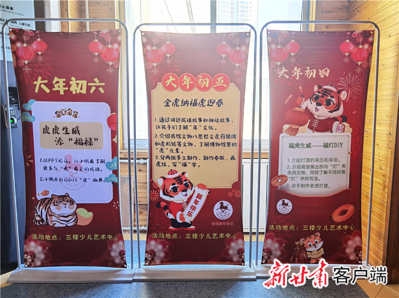 “后續(xù),還有大年初三的‘靈虎送福——虎紙漿畫DIY ’活動、大年初四的‘福虎生威——福燈DIY ’活動、大年初五的‘金虎納?;⒂?rsquo;活動、大年初六的‘虎虎生威添‘福祿’活動’。”省博物館社會教育部主任盧冬介紹,每場活動面向約30名小朋友開展,經(jīng)過前期策劃準(zhǔn)備,除了省博物館社教部的10余名工作人員,給孩子們普及有關(guān)虎和北京冬奧會的知識,還有來自西北師范大學(xué)、蘭州二十七中等校的學(xué)生志愿者,指導(dǎo)輔助孩子們玩游戲、做手工。