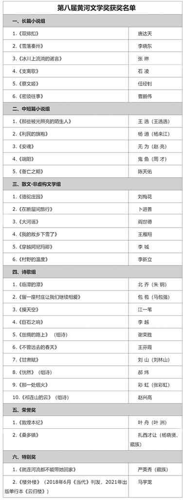 原標題:第八屆黃河文學獎 獲獎名單公示