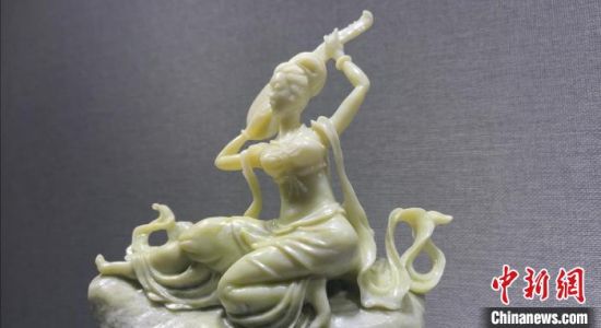 圖為敦煌飛天系列的玉雕作品。 高瑩 攝