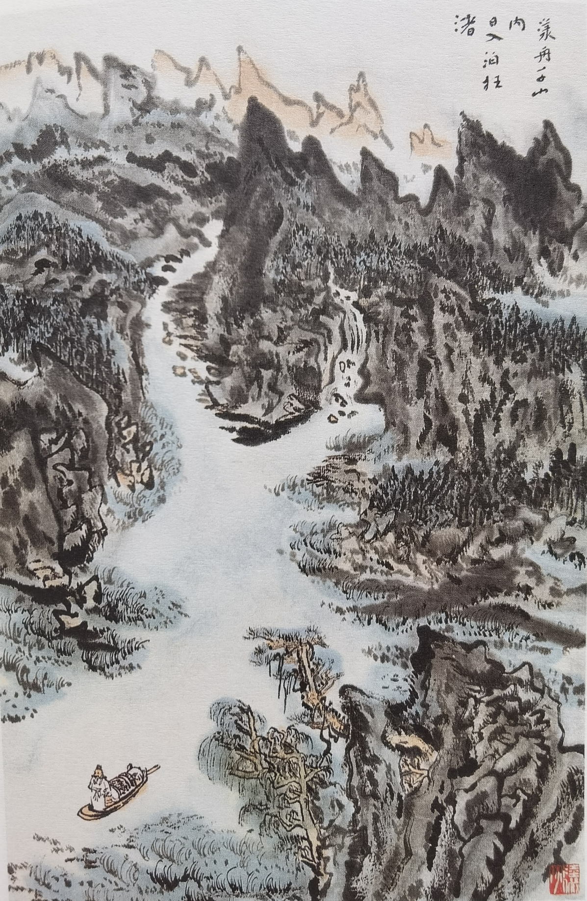 圖:陸儼少《杜甫詩意圖冊(cè)》之《漾舟千山內(nèi),日入泊枉渚》