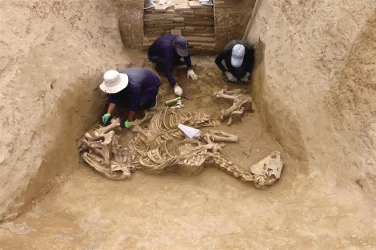 長嶺M1墓道內殉馬現場清理