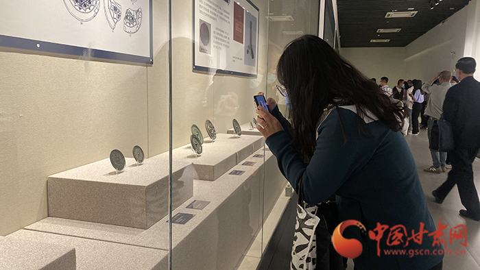 中國甘肅網(wǎng)5月9日訊(本網(wǎng)記者 沈文剛)5月9日,由蘭州市文旅局和平?jīng)鍪形穆镁种鬓k,蘭州市博物館、平?jīng)鍪胁┪镳^、涇川縣博物館、靈臺(tái)縣博物館、崇信縣博物館、華亭市博物館、莊浪縣博物館、靜寧縣博物館等八家市縣博物館聯(lián)合舉辦的《光耀金城 鏡鑒千秋——蘭州平?jīng)鲳^藏精品銅鏡聯(lián)展》開展。
