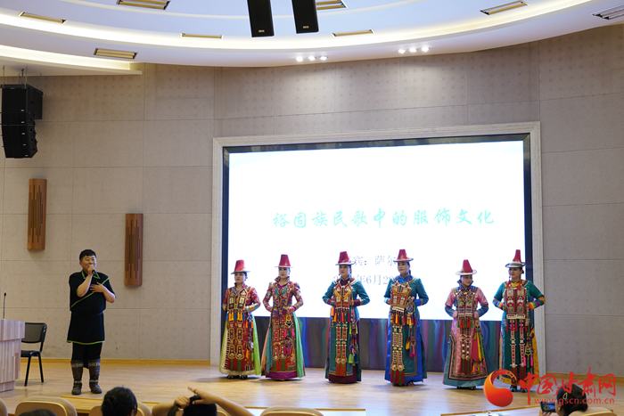中國甘肅網(wǎng)7月1日訊 近日,甘肅裕固族歌唱組合薩爾組合主唱薩爾帶著他的裕固族伙伴們走進(jìn)西北師范大學(xué)音樂學(xué)院,進(jìn)行“課程思政教學(xué)實(shí)踐”——《裕固族民歌中的服飾文化》交流分享活動。同時,西北師范大學(xué)音樂學(xué)院副院長晏曉東為七位裕固族民間音樂傳播者頒發(fā)了音樂學(xué)院聘書。