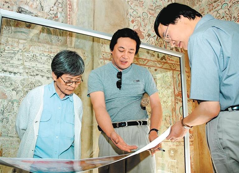 樊錦詩(shī)在莫高窟洞窟內(nèi)指導(dǎo)《敦煌石窟考古全集》的編寫(xiě)工作。(資料圖)(本文圖片除署名外均由敦煌研究院提供)