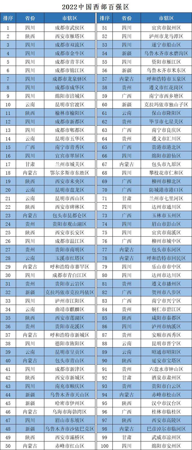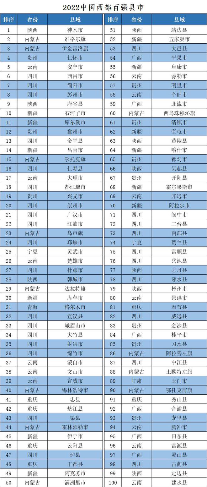 《中國西部地區(qū)縣域發(fā)展監(jiān)測報(bào)告》由競爭力智庫、北京中新城市規(guī)劃設(shè)計(jì)研究院等機(jī)構(gòu)聯(lián)合編制,監(jiān)測評價(jià)對象為西部12個(gè)?。ㄗ灾螀^(qū)、直轄市)的全部縣域單位,從經(jīng)濟(jì)規(guī)模、人民生活、經(jīng)濟(jì)活力、發(fā)展質(zhì)量等四個(gè)方面進(jìn)行評價(jià),四個(gè)分項(xiàng)指數(shù)合成競爭力指數(shù)。其中,縣(縣級市、自治縣、旗、自治旗、特區(qū))競爭力指數(shù)前100名為“中國西部地區(qū)綜合競爭力百強(qiáng)縣市”,簡稱“中國西部百強(qiáng)縣市”或“西部百強(qiáng)縣”;市轄區(qū)競爭力指數(shù)前100名為“中國西部地區(qū)綜合競爭力百強(qiáng)區(qū)”,簡稱“中國西部百強(qiáng)區(qū)”或“西部百強(qiáng)區(qū)”。今年,課題組在開展西部地區(qū)縣域發(fā)展監(jiān)測評價(jià)的基礎(chǔ)上,還聯(lián)合有關(guān)單位和專家,分區(qū)域、分類型總結(jié)了“2022中國西部地區(qū)縣域高質(zhì)量發(fā)展典型案例”,準(zhǔn)格爾旗、平果市、仁壽縣、彭州市、瀘縣、吳起縣、玉門市、開陽縣、大竹縣、彬州市、成都市雙流區(qū)、西安市雁塔區(qū)、昆明市官渡區(qū)、包頭市昆都侖區(qū)、克拉瑪依市克拉瑪依區(qū)、貴陽市觀山湖區(qū)、南寧市青秀區(qū)、蘭州市城關(guān)區(qū)、西寧市城西區(qū)、銀川市興慶區(qū)等20個(gè)縣(市、區(qū))入選典型案例名單,供全國交流學(xué)習(xí)。