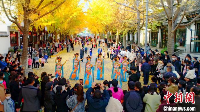 11月中下旬,在甘肅省天水市秦州區(qū)“黃金大道”上演了“絲路舞姿”,舞蹈是由秦州區(qū)文旅局組織的舞蹈隊帶來的舞蹈《絲路》《醉太平》和《萬疆》等。該路段由于216株銀杏樹的金黃色樹葉彼此參差相連,宛如兩條“黃金色帶”在道路兩側,所以被當地居民稱為“黃金大道”。