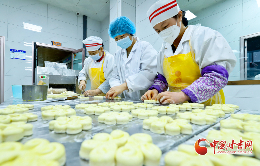 1月10日,在張掖市山丹縣一饃饃制作車間里,工作人員正在制作“糖花子”。