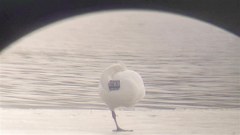 中國(guó)甘肅網(wǎng)2月20日訊 據(jù)蘭州晚報(bào)報(bào)道(記者 譚安麗)近日,蘭州市林業(yè)局及蘭州野生動(dòng)物疫源疫病監(jiān)測(cè)站監(jiān)測(cè)到,在三河口越冬的大天鵝種群數(shù)量較前段時(shí)間新增加了3只。其中一只頸部佩戴著藍(lán)底白字環(huán)志的大天鵝格外引人注目,環(huán)志上寫(xiě)著“1T83”,這是蘭州市首次發(fā)現(xiàn)佩戴有明顯標(biāo)識(shí)的大天鵝。