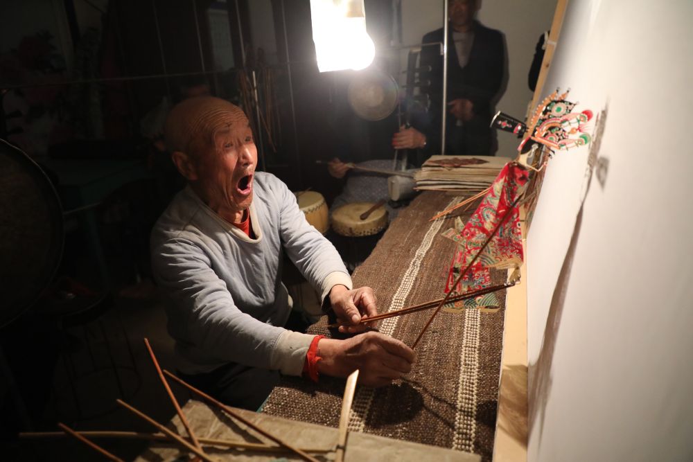 敬廷佑正在進行道情皮影表演。新華社記者 張睿 攝