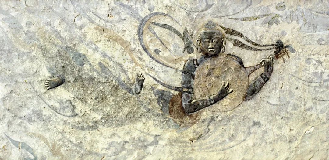 ▲第4窟頂部薄肉塑伎樂飛天,北周時(shí)期。