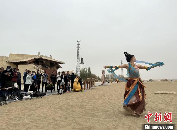 近年來(lái),敦煌市委網(wǎng)信辦以“壁畫(huà)變裝秀”“飛天舞蹈短視頻”“漫說(shuō)敦煌歷史”等形式,弘揚(yáng)敦煌文化。6月以來(lái),內(nèi)地很多敦煌舞愛(ài)好者涌向敦煌,穿上以飛天服飾為代表的各種古裝,在絲綢之路旅游網(wǎng)紅“打卡地”鳴沙山月牙泉、玉門關(guān)、陽(yáng)關(guān)等景區(qū)拍照、直播,各種不同的古裝服飾也為“大漠孤煙直”的絲路古道增添了無(wú)限色彩。