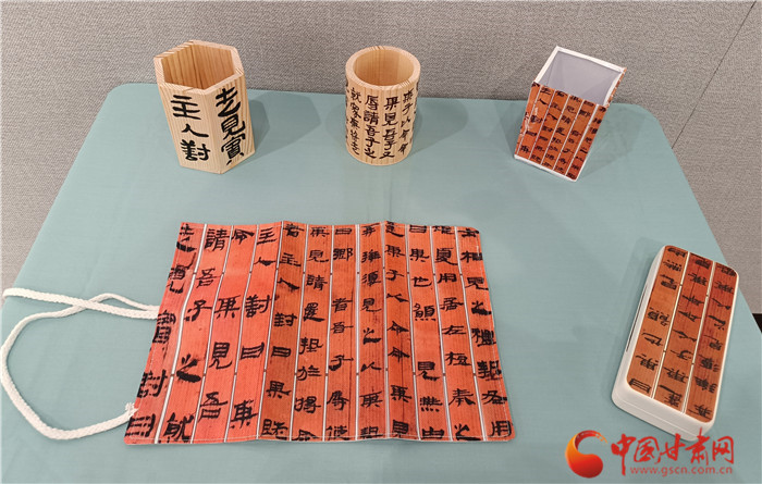而在西北師范大學(xué)美術(shù)學(xué)院,簡(jiǎn)牘則以文創(chuàng)的形式呈現(xiàn)美感,豐富著人們的生活。近日,由西北師范大學(xué)聯(lián)合甘肅簡(jiǎn)牘博物館舉辦的“簡(jiǎn)述中國(guó) 牘懂絲路”展覽正在展出,包含簡(jiǎn)牘書法、文創(chuàng)成果兩部分。