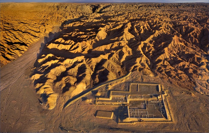 空中俯拍的懸泉置遺址(資料照片)。甘肅省敦煌市懸泉置遺址保護(hù)所供圖