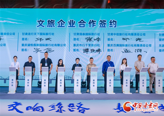 推介會(huì)上,蘭州、隴南兩地文旅部門(mén)分別作了當(dāng)?shù)匚穆觅Y源主題推介。甘肅蘭鐵國(guó)際旅行社與重慶和平國(guó)際旅行社;甘肅蘭神國(guó)際旅行社與重慶西美國(guó)際旅行社;嘉峪關(guān)君和國(guó)際旅行社與重慶渝之旅國(guó)際旅行社等兩地的20家文旅企業(yè)(旅行社)代表分別簽訂了《甘渝客源互送合作協(xié)議》。
