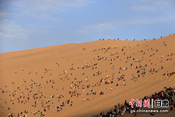 今年以來(lái),甘肅省敦煌市旅游市場(chǎng)持續(xù)火熱。當(dāng)?shù)刂包c(diǎn)鳴沙山月牙泉在今年中秋國(guó)慶假期期間,累計(jì)接待游客首次突破300萬(wàn)人次,比2019年同期增長(zhǎng)35.5%,創(chuàng)歷史新高。(張曉亮 習(xí)剛)