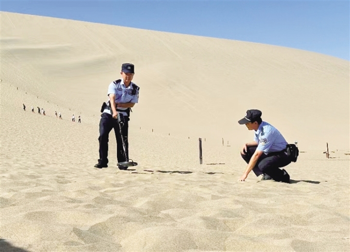 在鳴沙山·月牙泉景區(qū),負(fù)責(zé)執(zhí)勤的景區(qū)派出所民警,不僅維護(hù)景區(qū)及周邊的治安,也為游客提供熱心周到的服務(wù),僅在沙漠中為游客尋找的手機(jī)每年就有100余部,尋找返還隨身物品200余件,用“5A”警務(wù)服務(wù)5A景區(qū)。