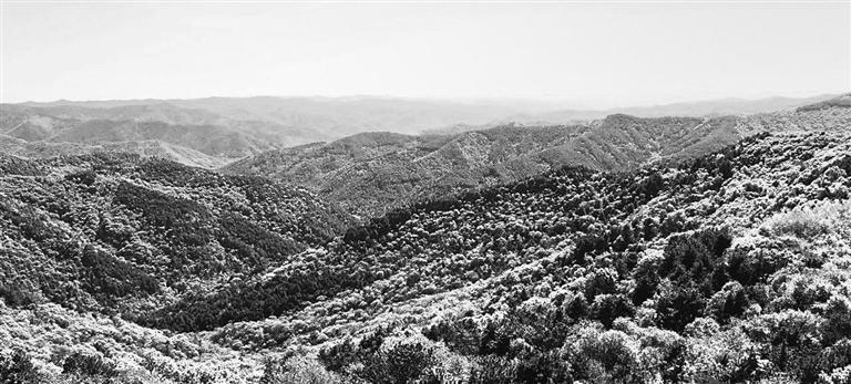 離開黃帝陵園,沿省道繼續(xù)行進(jìn),逐漸進(jìn)入了高原林海。四面山川勾連,丘谷交織,全被森林覆蓋。無數(shù)高峻的山嶺如群龍盤繞,道道山脊線條分明,錯落有致,茂密的林木在冬寒中襯成一派青藍(lán)底色,常綠的松柏又在林海中開拓出成片蒼翠。極目遠(yuǎn)望,在正午的陽光照耀下,林海風(fēng)煙彌漫,顯出一種天地間的浩然之氣。