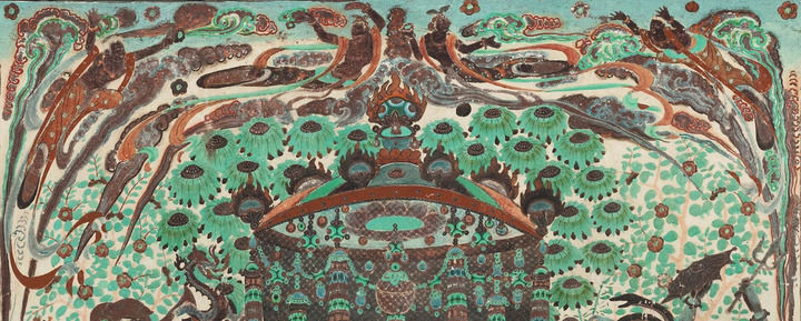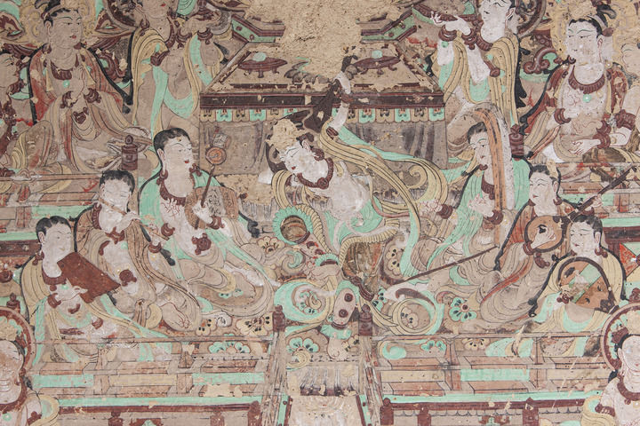 莫高窟第112窟-壁畫-主室北壁-報(bào)恩經(jīng)變之樂(lè)舞圖。(敦煌研究院供圖)