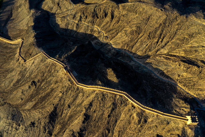 位于甘肅省嘉峪關(guān)市的懸壁長(zhǎng)城(2023年7月15日攝)。新華每日電訊記者 方欣 攝