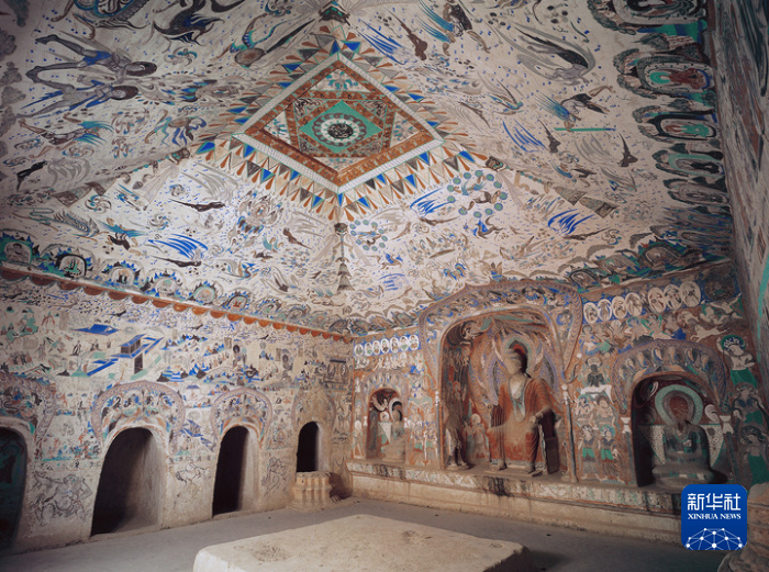 莫高窟第285窟營(yíng)建于西魏,是莫高窟最早有紀(jì)年的洞窟,也是一座“萬(wàn)神殿”。壁畫(huà)中,既有古希臘神話中的阿波羅和狄安娜,也有中國(guó)神話中的伏羲、女?huà)z;既有來(lái)自印度佛教的飛天,又有中國(guó)道教的羽人。