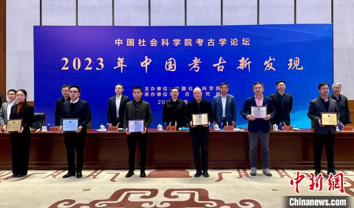 2023年中國考古新發(fā)現(xiàn)入選項(xiàng)目獲頒獎(jiǎng)牌。中新網(wǎng)記者 孫自法 攝