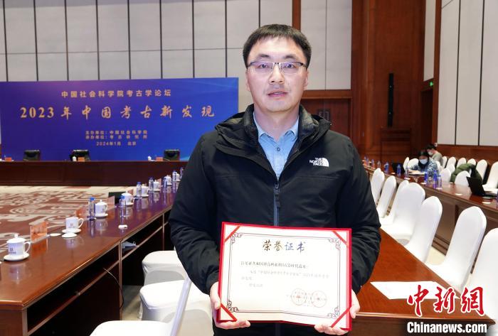 1月30日,2023年中國(guó)考古新發(fā)現(xiàn)在北京揭曉發(fā)布,肯尼亞共和國(guó)博高利亞湖舊石器時(shí)代遺址入選中國(guó)2023年國(guó)外考古新發(fā)現(xiàn),趙清坡代表項(xiàng)目領(lǐng)取榮譽(yù)證書(shū)在會(huì)場(chǎng)留影。中新網(wǎng)記者 孫自法 攝