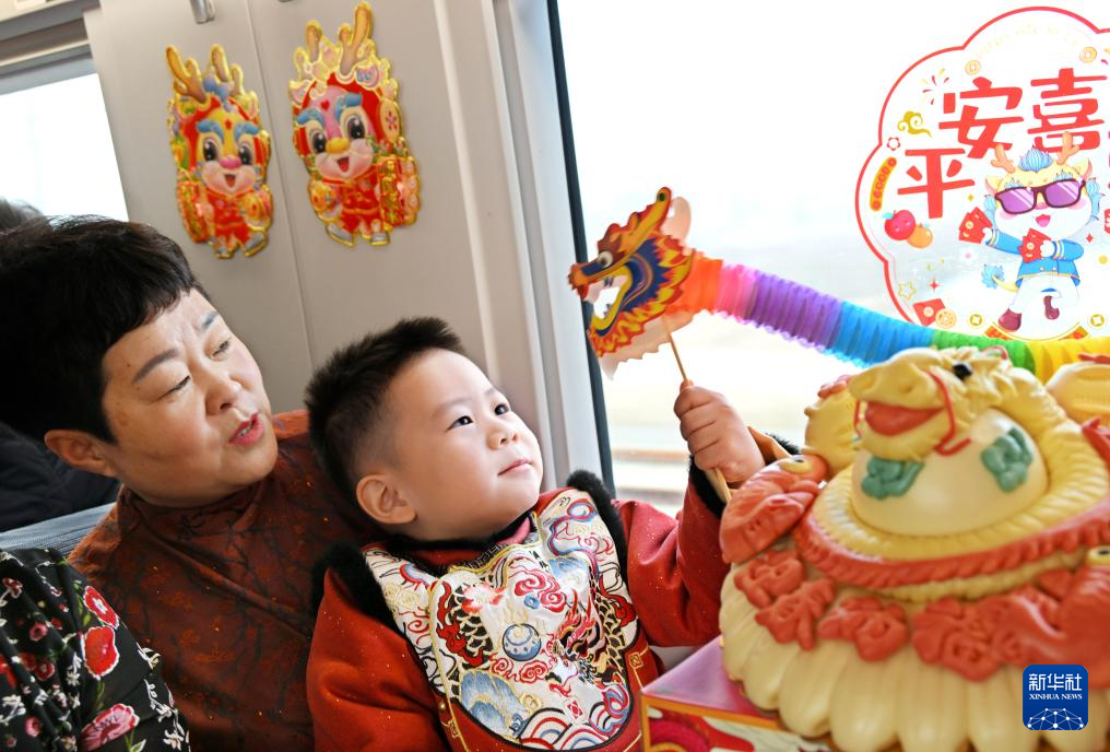 當(dāng)日,中國鐵路濟南局集團有限公司青島客運段在齊魯環(huán)游線G6955次列車上開展“年俗非遺進高鐵”活動,讓旅客在旅途中感受傳統(tǒng)文化的魅力,營造濃郁的節(jié)日氛圍。