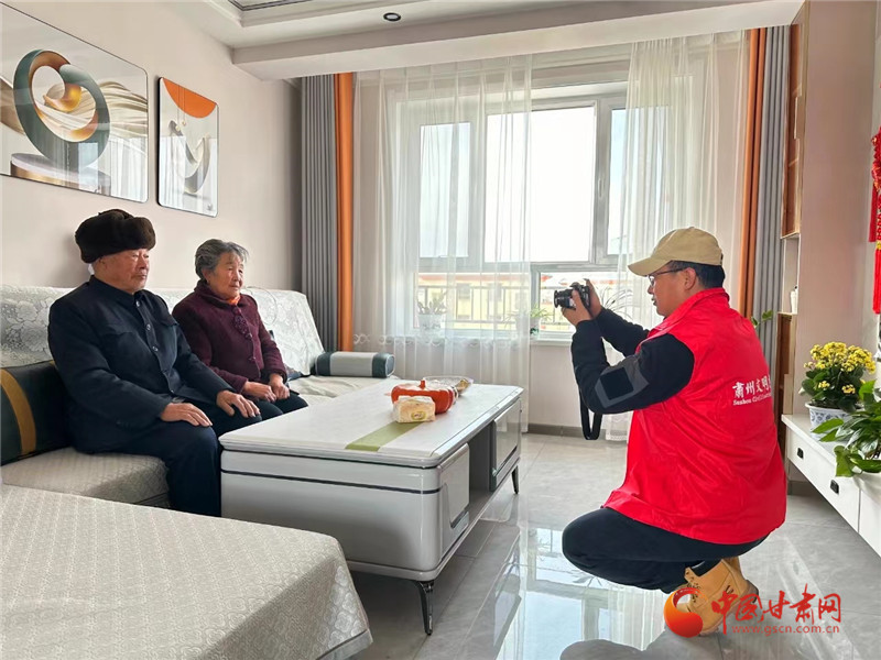“大爺笑一笑,牽著大娘的手……”攝影志愿者們下村入戶,上門為村民拍攝全家福,用鏡頭為群眾定格幸福團圓的瞬間,留住溫馨美好記憶。從選擇服裝到整理發(fā)型,從選取角度到調(diào)動情緒,志愿者們忙的不亦樂乎,在他們的引導和鼓勵下,老兩口由開始的緊張到后來的自信從容,一幕幕美好的生活片段被記錄了下來。