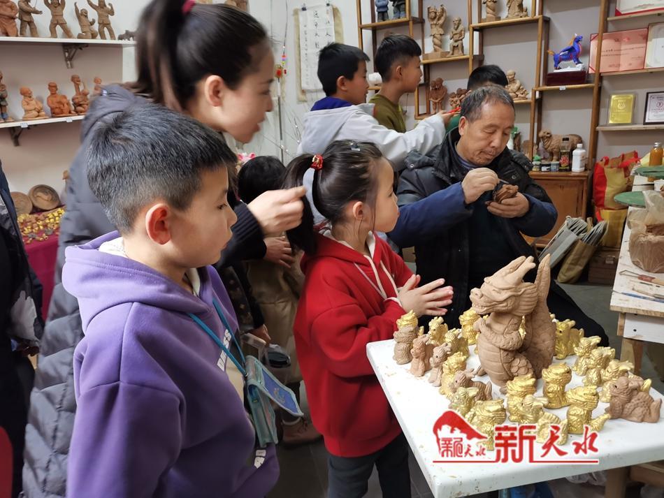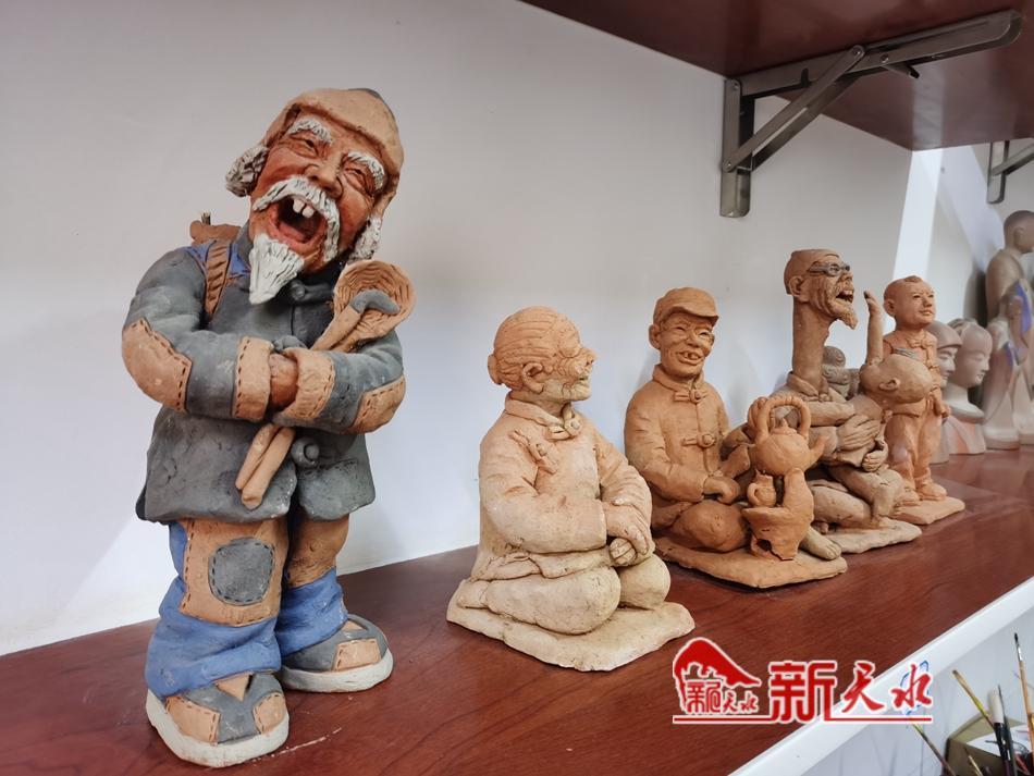 展示架上,一眼望去,那一個個嘴巴微張、憨態(tài)可掬,融入卡通元素且寓意新年萬事順?biāo)?、寓意風(fēng)調(diào)雨順的生肖“拜年龍”“大嘴龍”“萌萌龍”神態(tài)各異,讓人感受到吉祥喜慶的年味。而那些以十二生肖為題材的其他泥塑作品亦是栩栩如生、活靈活現(xiàn),頓時讓這一方天地變得可愛而親近。