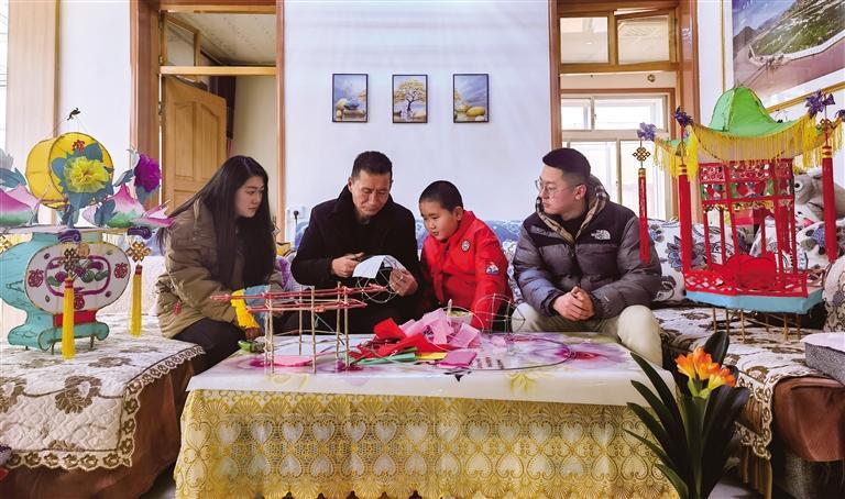 正月初十,記者走進(jìn)魏世發(fā)家中,院中一盞盞精美的花燈擺放有序,色彩鮮艷、栩栩如生,呈現(xiàn)出皋蘭傳統(tǒng)手工花燈技藝的魅力。朱榮亮是石洞小學(xué)二年級(jí)學(xué)生,一次偶然的機(jī)會(huì)接觸到什川花燈,便產(chǎn)生了濃厚的興趣。他說(shuō):“以前見(jiàn)到花燈我就非常喜歡,今天媽媽專(zhuān)程帶我來(lái)到魏爺爺家學(xué)做花燈,非常有趣。以后有機(jī)會(huì),我會(huì)帶著對(duì)花燈感興趣的同學(xué)來(lái)魏爺爺家跟他學(xué)做花燈。”