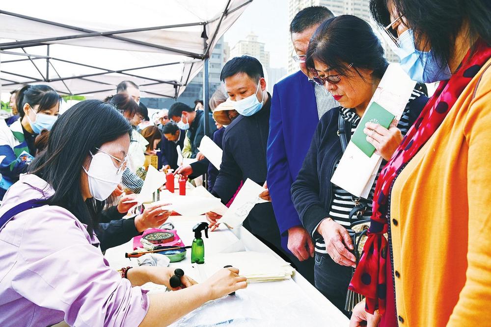 活動現(xiàn)場,甘肅省圖書館的工作人員帶領(lǐng)讀者體驗傳拓之美。 新甘肅·甘肅經(jīng)濟(jì)日報記者 瞿娟 攝
