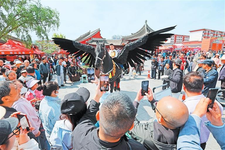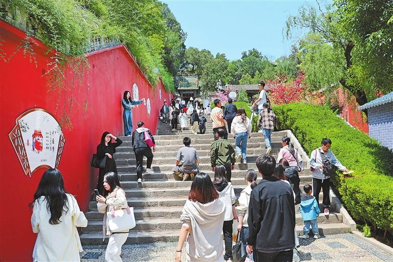 伏羲廟廣場吸引游客打卡拍照。