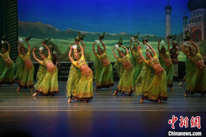 2023年4月17日晚,中國(guó)經(jīng)典舞劇《絲路花雨》在澳門(mén)百老匯劇場(chǎng)演出。(資料圖)甘肅演藝集團(tuán)供圖