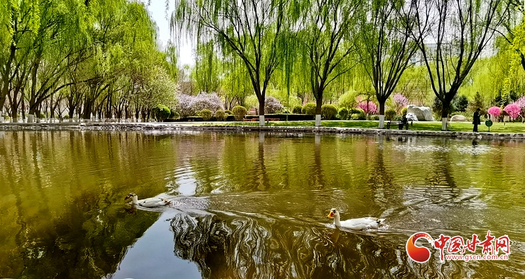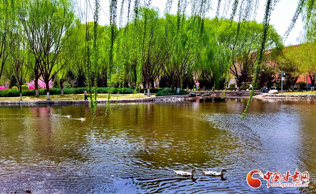4月14日清晨,位于甘肅省張掖市河西學(xué)院的明理湖畔,春風(fēng)拂柳,鴨子嬉戲,空氣中不時(shí)飄來花香縷縷,到處一派春意盎然的美景。