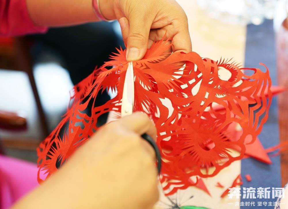 尹麗珺的剪紙師承其姥姥,“我從10來歲就開始練習(xí)剪紙了,題材多取材于現(xiàn)實(shí)生活,會(huì)把日常所見、所聞、所思、所感變成剪紙圖案,也是表達(dá)情感的一種方式。”尹麗珺在剪紙中也吸收了“刻、鑿、折”等手法,形成了“剪、刻、鑿、折”的多種技法,使得作品更加賞心悅目,龍圖漢服是尹麗珺的第一件剪紙服飾,運(yùn)用了多種技藝,莊重大方。