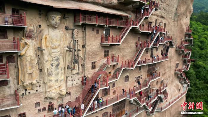 位于甘肅省天水市的麥積山石窟,處于中國(guó)石窟走廊的十字路口,溝通東西、連亙南北,既是中國(guó)各民族交往交流交融的藝術(shù)再現(xiàn),也成為東西方文明交流互鑒的重要標(biāo)志。2014年,麥積山石窟作為“絲綢之路:長(zhǎng)安—天山廊道的路網(wǎng)”的組成部分,被聯(lián)合國(guó)教科文組織公布為世界文化遺產(chǎn)。