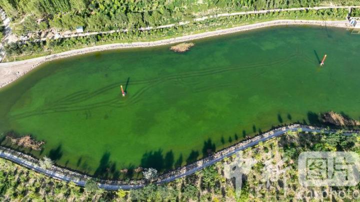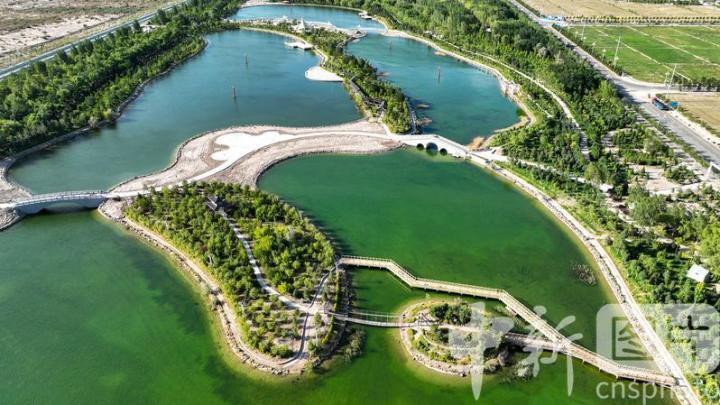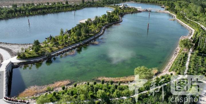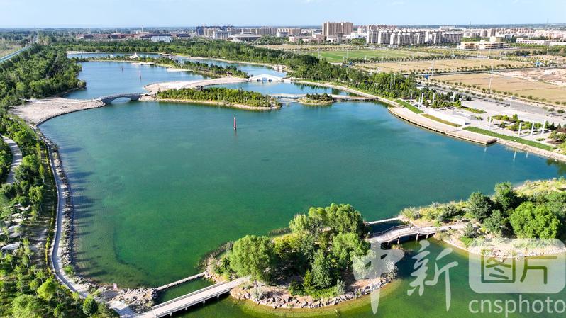 2024年7月27日,航拍甘肅省酒泉市金塔縣城西生態(tài)湖,綠意盎然,生機勃勃,構成了“戈壁水鄉(xiāng)”的獨特畫卷。中新社發(fā) 曹紅祖 攝