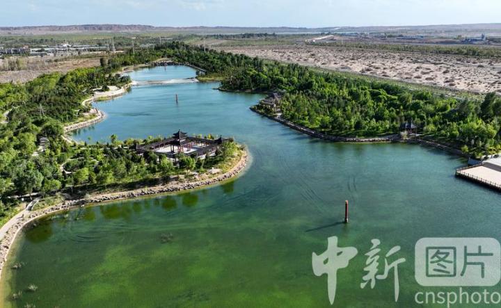 2024年7月27日,航拍甘肅省酒泉市金塔縣城西生態(tài)湖,綠意盎然,生機勃勃,構成了“戈壁水鄉(xiāng)”的獨特畫卷。 中新社發(fā) 曹紅祖 攝