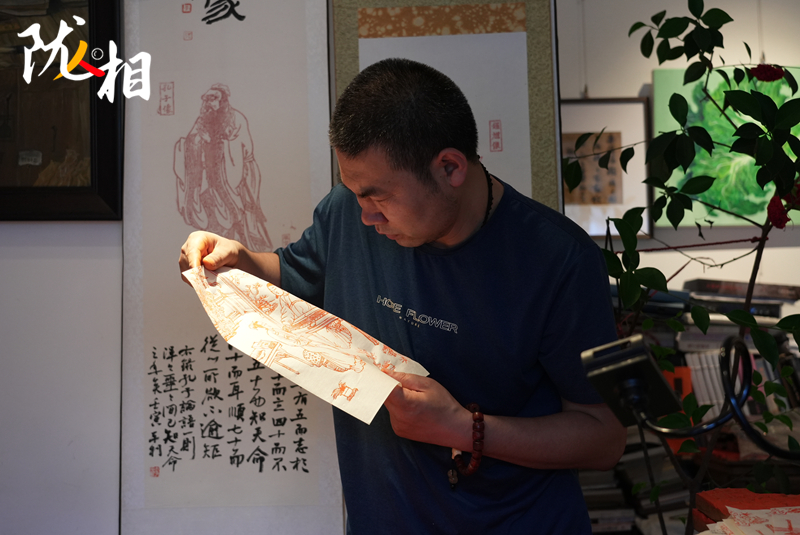 “木刻版畫(huà)最困難的步驟,就是能將原圖精準(zhǔn)復(fù)刻,在雕刻過(guò)程中,稍有不慎便會(huì)出錯(cuò),需要全神貫注投入其中,才能在刀尖上誕生出精美的藝術(shù)品。”李安樂(lè)說(shuō),拓印前要進(jìn)行刷色,首先需要制作顏料。他選擇了純色拓印,在朱砂粉中倒入明膠,加入水或酒稀釋?zhuān)瑪嚢韬箢伭暇椭谱魍瓿闪?。接下?lái)便是開(kāi)始潤(rùn)板,再開(kāi)始刷色,最后將紙張覆蓋在木板上進(jìn)行拓印,在拓印過(guò)程中,利用櫚擦或馬蓮進(jìn)行摩擦拓印,等這一系列操作完成后,一幅栩栩如生的木刻版畫(huà)就呈現(xiàn)了出來(lái)。