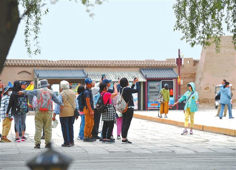 游客在嘉峪關(guān)關(guān)城拍照留念。新甘肅·甘肅日報記者 馬伊星