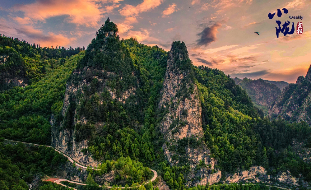 傍晚時分,天空變得絢爛多彩,晚霞映照白霧,起伏著山巒,坡地和浪漫;幾處白墻黛瓦的民居,升起炊香,滿目清爽之氣彌漫,用詩意繪就生態(tài)家園。