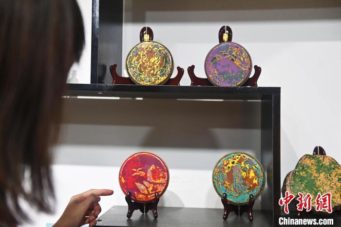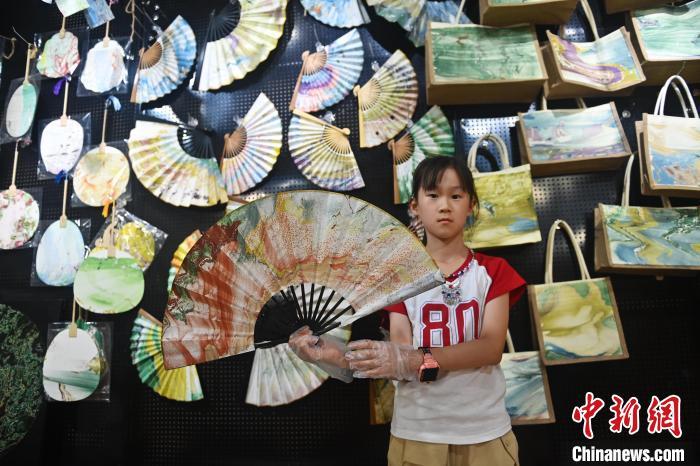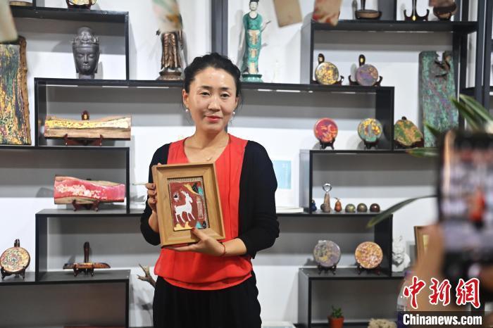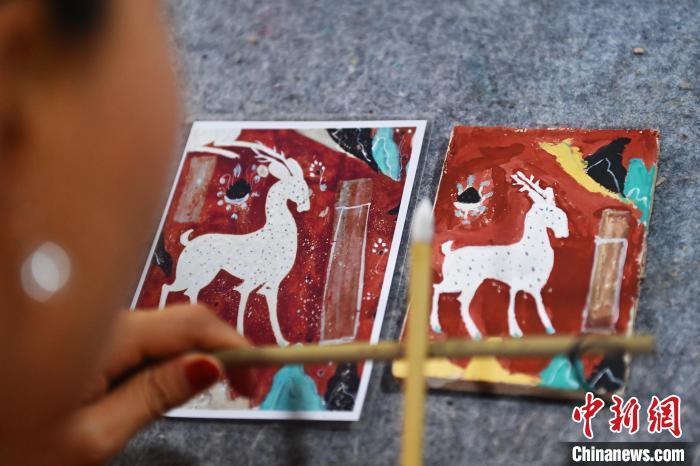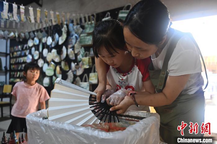8月20日,甘肅敦煌莫高里工匠村內(nèi),學(xué)員展示研學(xué)成果。工匠村開設(shè)了泥板畫、彩繪、雕塑制作、剪紙、農(nóng)耕體驗等課程,現(xiàn)已發(fā)展成為一個集敦煌文化講堂、壁畫書法研習(xí)、美術(shù)設(shè)計、彩塑制作教學(xué)、篆刻藝術(shù)、傳統(tǒng)釀酒體驗、農(nóng)業(yè)產(chǎn)業(yè)發(fā)展等于一體的多功能實訓(xùn)基地。中新社記者 李亞龍 攝